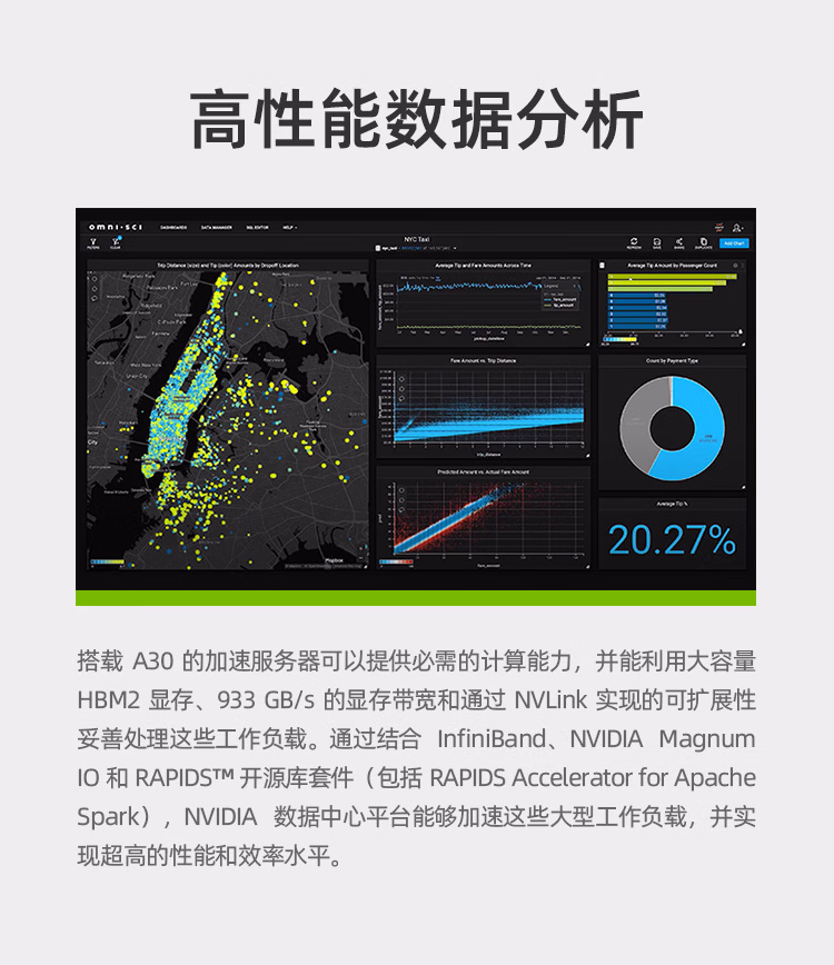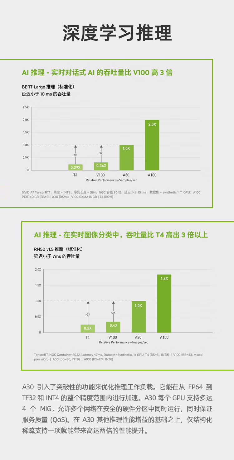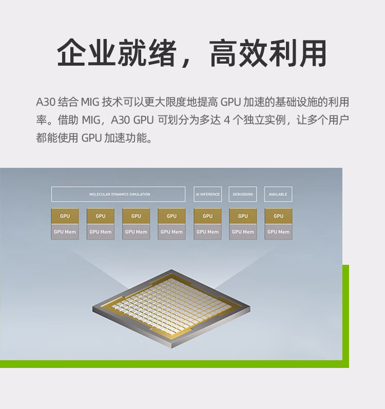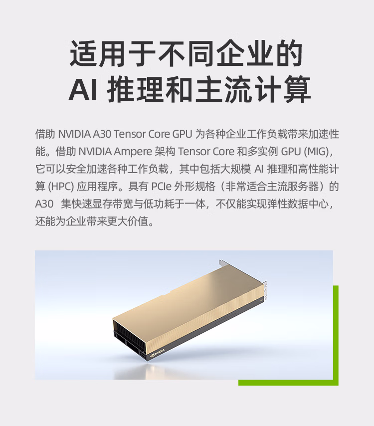 英伟达NVIDIA 数据中心GPU A30 GPU AI训练推理高性能显卡 人工智能深度学习GPU加速卡 A30 GPU 24G