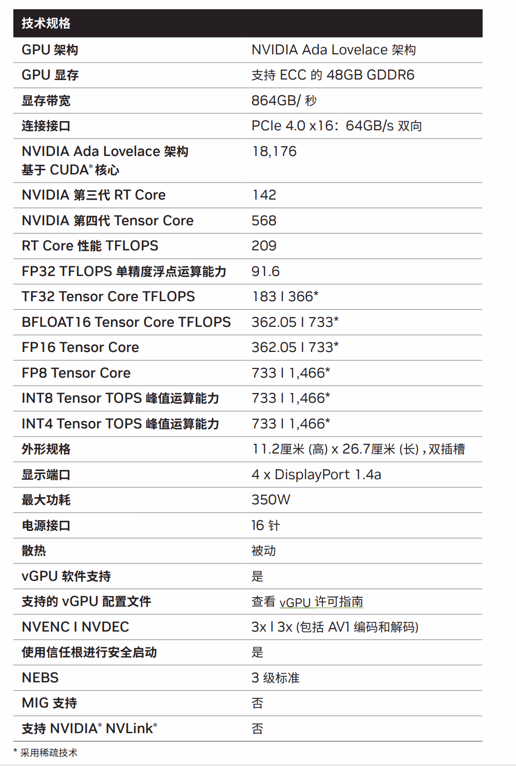 英伟达英伟达(NVIDIA)Tesla L40S 显卡48G深度学习AI训练 GPU计算卡 NVIDIA L40S 48G 原厂全新 48G