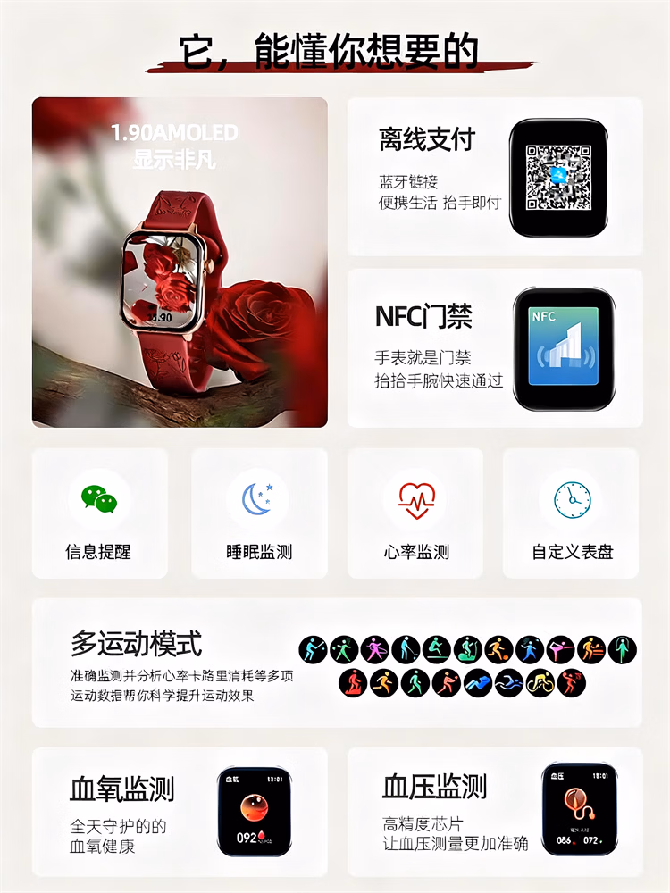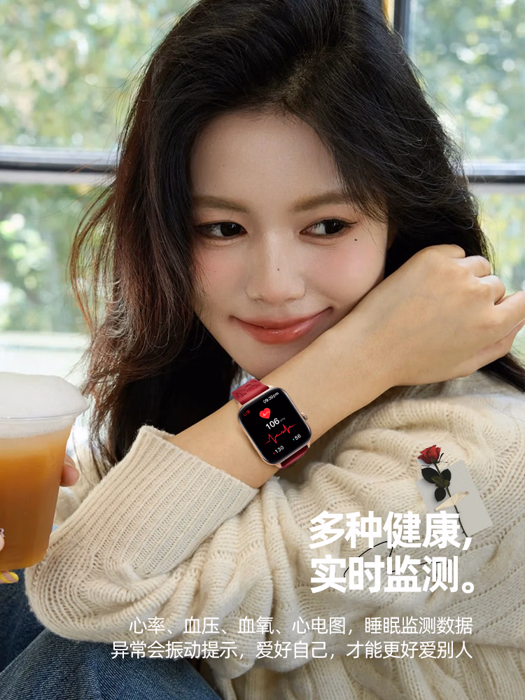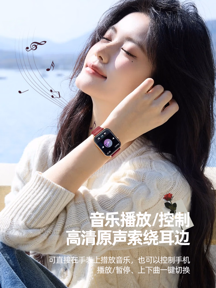SAE智能手表女生多功能接打通话健康心率运动手环适用于安卓ios手机2025新款生日礼物送女生女友 浮雕玫瑰-主图款【支付·蓝牙通话·消息查看等】